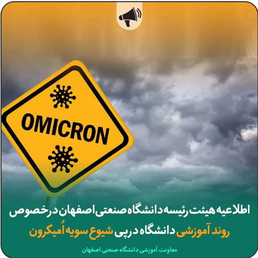 اطلاعيه هیئت رئیسه دانشگاه صنعتی اصفهان درخصوص روند آموزشی دانشگاه درپی شیوع سویه اُمیکرون