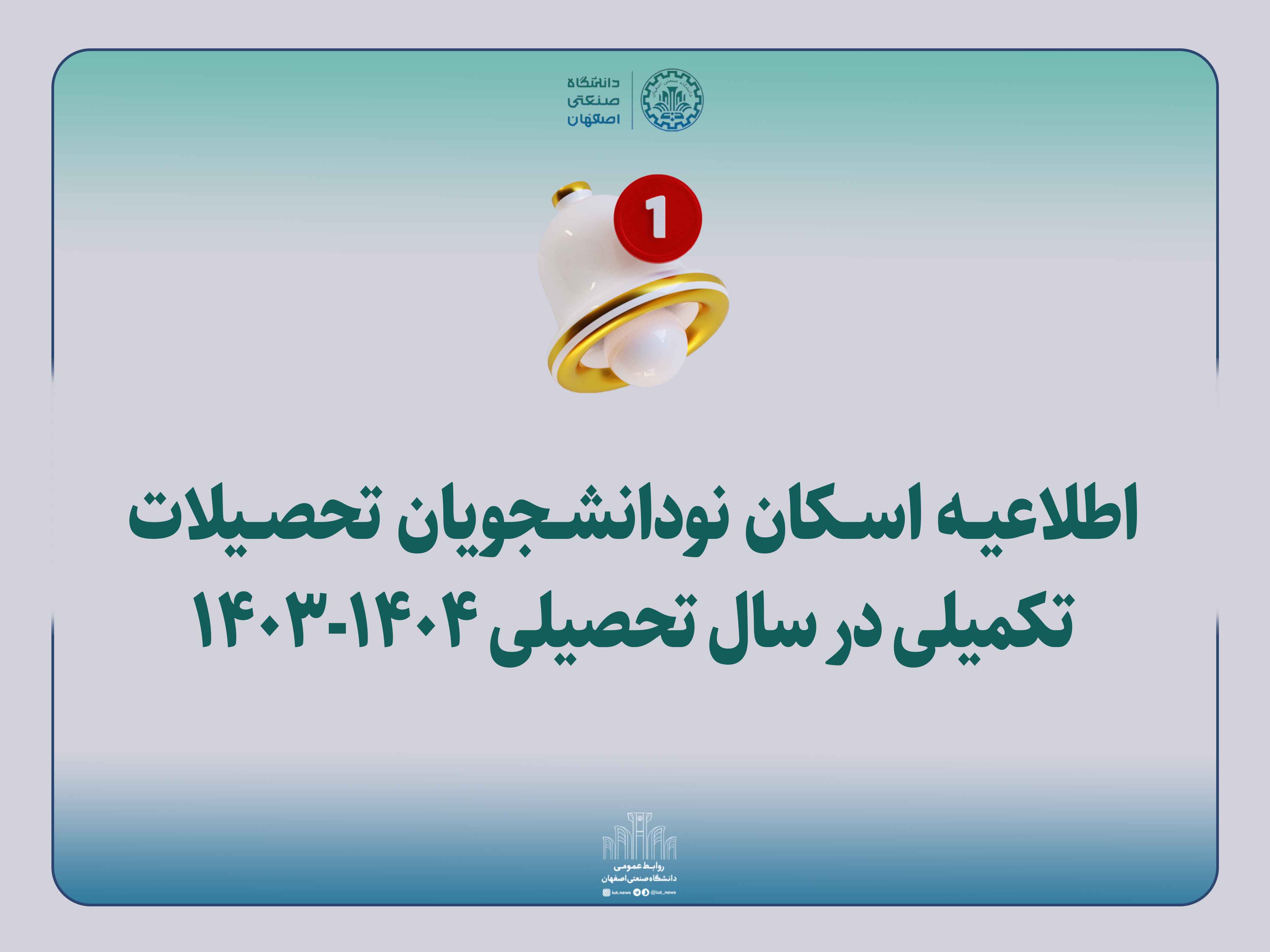 اطلاعیه پذيرفتهشدگان آزمون کارشناسی ارشد سال 1403 دانشگاه صنعتي اصفهان