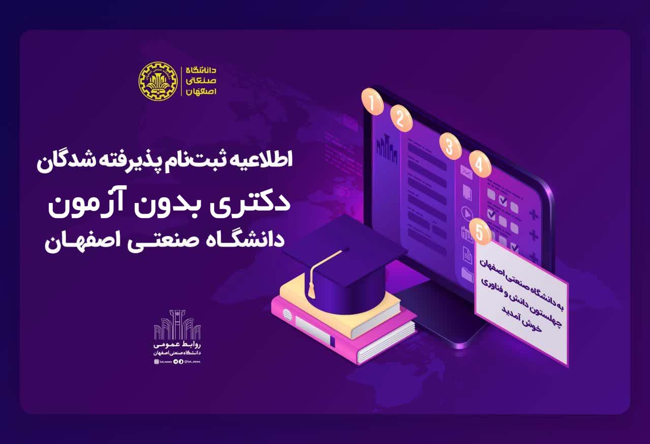 اطلاعیه پذيرفتهشدگان دکتري بدون آزمون سال 1403 دانشگاه صنعتي اصفهان