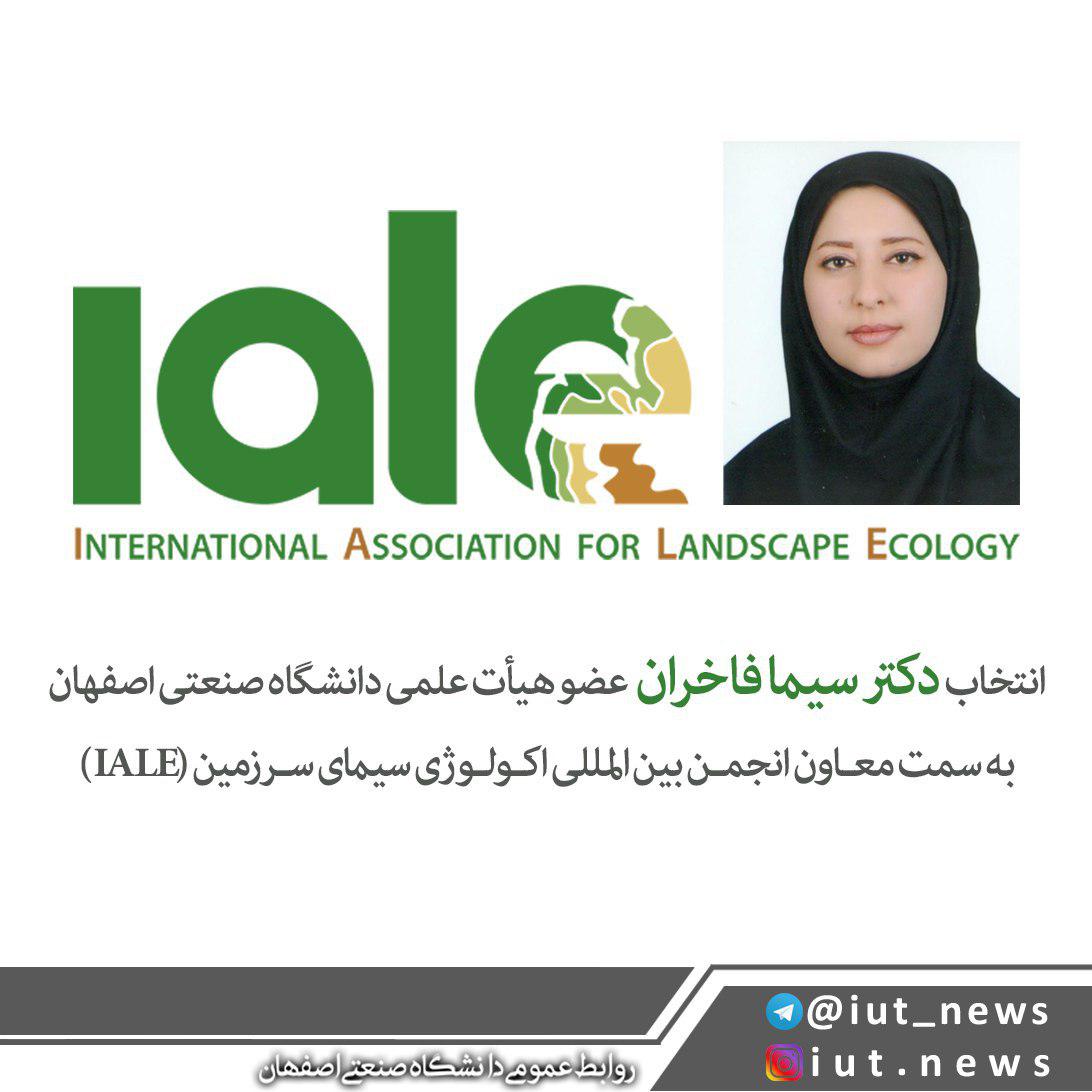 دکتر سیما فاخران، عضو هیأت علمی دانشگاه صنعتی اصفهان به سمت معاون انجمن بین المللی اکولوژی سیمای سرزمین(IALE) انتخاب شد.