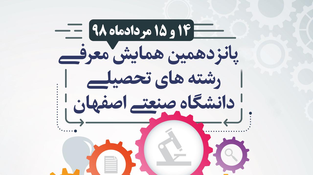 پانزدهمین همایش بزرگ معرفی رشته‌های تحصیلی دانشگاه صنعتی اصفهان برای دانش آموزان دختر روزدوشنبه 14 مردادماه و برای دانش آموزان پسر روز سه شنبه 15 مردادماه در تالار شیخ بهایی این دانشگاه برگزار خواهد شد.