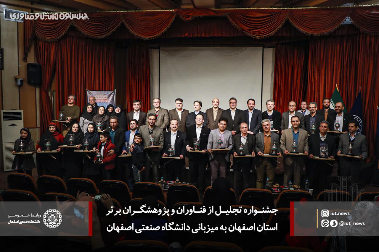 آئین تجلیل از پژوهشگران و فناوران برتر استان اصفهان به عنوان مراسم اختتامیه بیستمین جشنواره پژوهش و فناوری استان، با تجلیل از 23 پژوهشگر و فناور برتر استان، شامگاه شنبه 7 دی ماه در تالار شهید فتوحی دانشگاه صنعتی اصفهان برگزار شد.