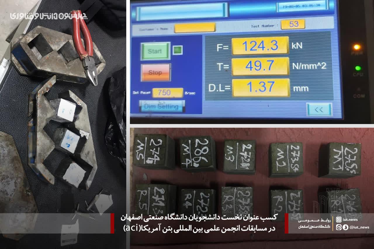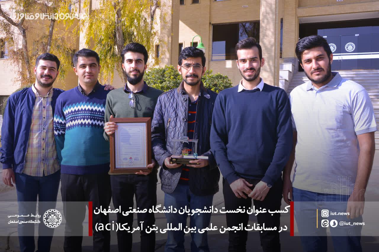 كسب عنوان نخست دانشجویان دانشگاه صنعتی اصفهان در مسابقات انجمن علمی بین المللی بتن آمریکا(aci)