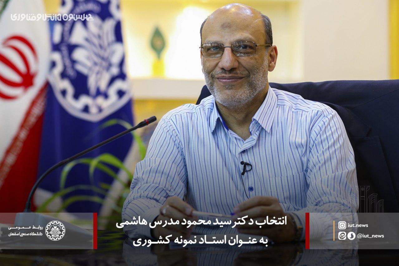 بر این اساس دکتر سید محمود مدرس هاشمی، استاد دانشکده مهندسی برق وکامپیوتر دانشگاه صنعتی اصفهان به عنوان یکی از 16 استاد نمونه کشور در سال 1399 معرفی شد.