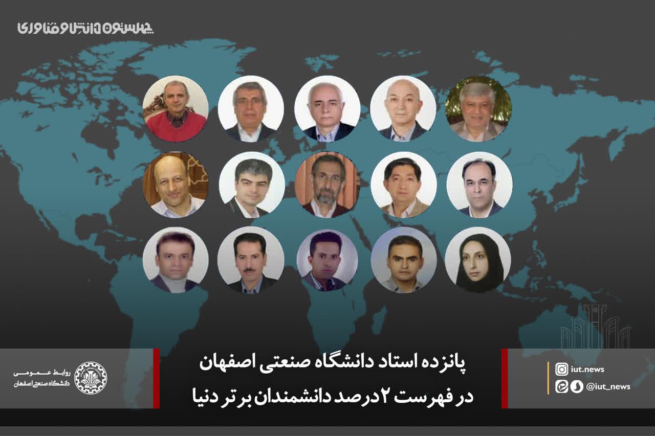 در اين ميان 15 عضو هیئت علمی دانشگاه صنعتی اصفهان از دانشکده های شیمی، مهندسی مواد، مهندسی مکانیک، مهندسی شیمی، مهندسی برق و کامپیوتر و منابع طبیعی در فهرست دانشمندان 2درصد برتر دنیا قرار گرفتند.