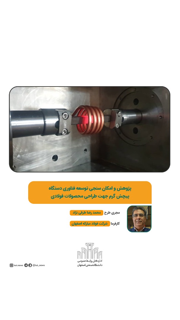 طرح پژوهشی 'امکان سنجی توسعه فناوری دستگاه پیچش گرم جهت طراحی محصولات فولادی' با مديريت دكتر محمد رضا طرقی نژاد، عضو هيئت علمي دانشكده مهندسی مواد دانشگاه صنعتی اصفهان از جمله طرح های برگزیده این فهرست است.