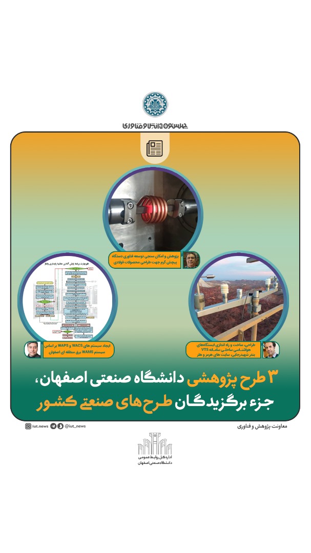 ایجاد سیستم های WACS و WAPS بر اساس سیستم WAMS برق منطقه ای اصفهان با مديريت دكتر محمد اسماعيل همداني گلشن عضو هیئت علمي دانشكده مهندسي برق و كامپيوتر طرح برگزیده دیگر دانشگاه صنعتی اصفهان است.