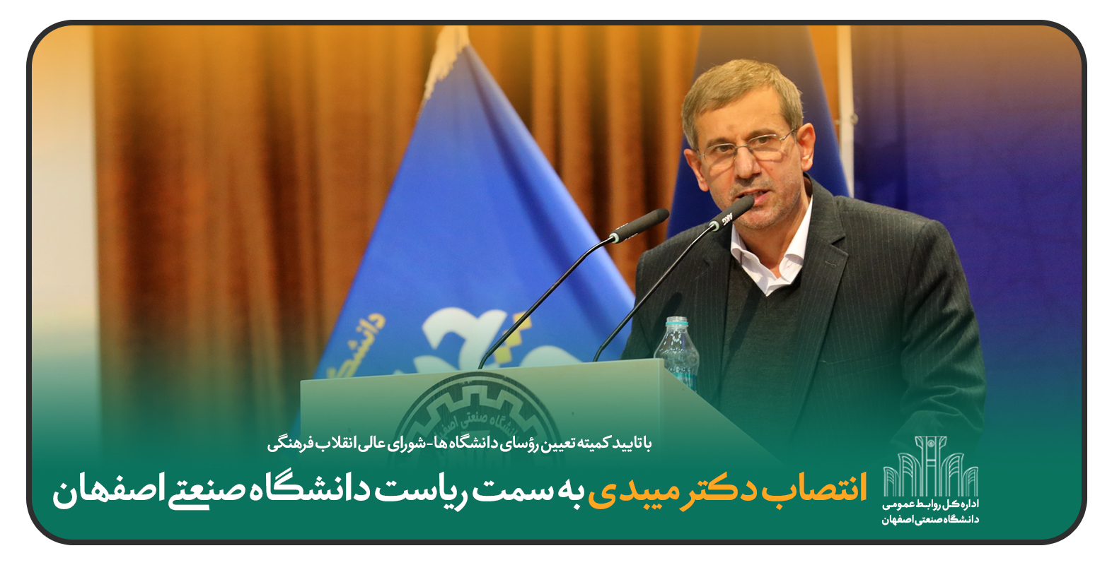 گفتنی است براساس مصوبه چهل و پنجمین جلسه کمیته تعیین رؤسای دانشگاه – شورای عالی انقلاب فرهنگی در تاریخ 21 فروردین ماه و با ابلاغ وزیر علوم ، تحقیقات و فناوری دکتر میبدی از تاریخ 24 فروردین ماه برای مدت 4 سال ریاست دانشگاه صنعتی اصفهان را برعهده خواهد داشت.
