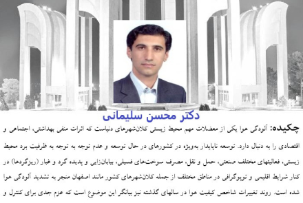 آلودگي هوا يكي از معضلات مهم محيط زيستي كلان شهرهاي دنياست كه اثرات منفي بهداشتي، اجتماعي و اقتصادي را به دنبال دارد. توسعه ناپايدار به ويژه در كشورهاي در حال توسعه و عدم توجه به ظرفيت برد محيط زيستي، فعاليت هاي مختلف صنعتي، حمل و نقل، مصرف سوخت هاي فسيلي، بيابان زايي و پديده گرد و غبار(ريزگردها) در كنار شرايط اقليمي و توپوگرافي در مناطق مختلف از جمله كلان شهرهاي كشور مانند اصفهان منجر به تشديد آلودگي هوا شده است. روند تغييرات شاخص كيفيت هوا در سالهاي گذشته نيز بيانگر اين موضوع است كه عزم جدي براي كنترل و كاهش آن مي طلبد.