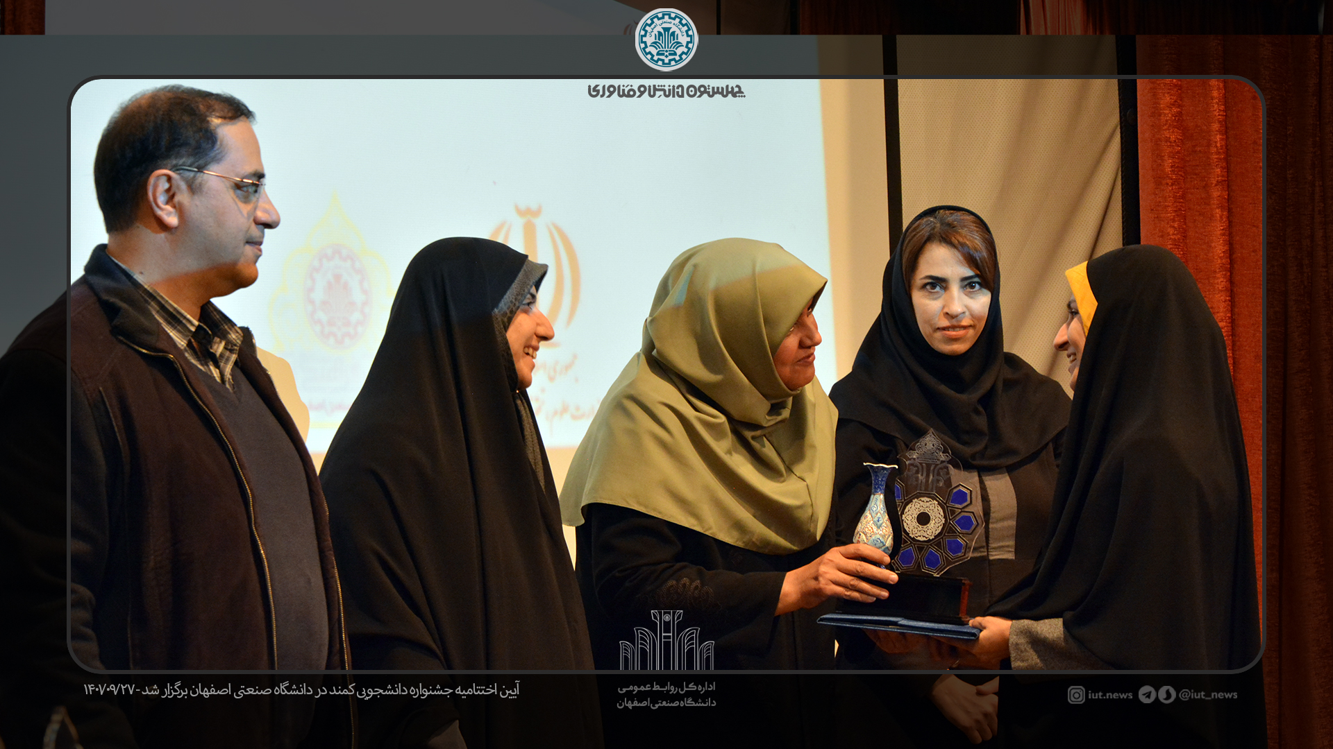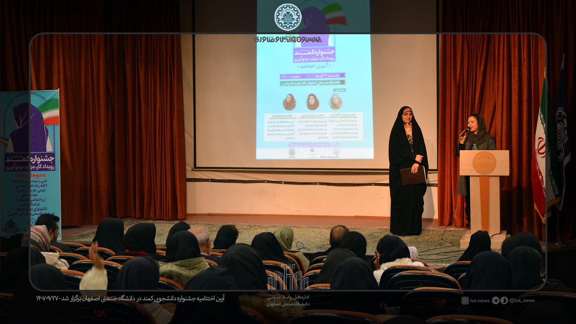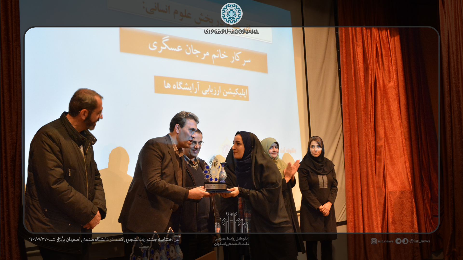 بدنبال برگزاری اختتامیه جشنواره استانی کمند از 9 بانوی دانشجو برگزیده رویداد کار، مهارت و نوآوری در سه شاخه فنی و مهندسی و علوم پایه، حوزه انسانی و فرهنگ و هنر از 10 دانشگاه استان اصفهان تقدیر شد.