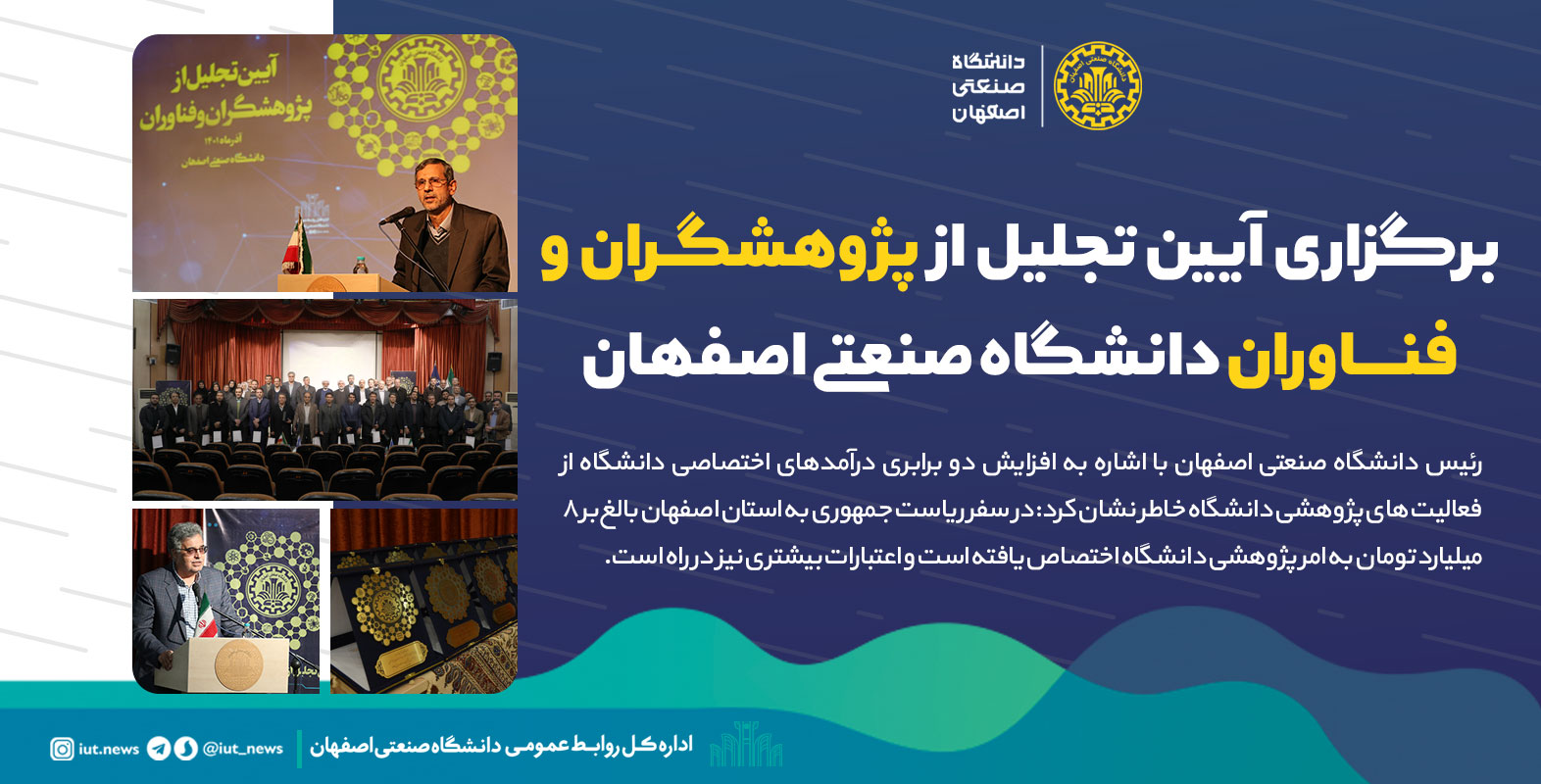 آیین تجلیل از پژوهشگران و فناوران دانشگاه صنعتی اصفهان برگزار شد