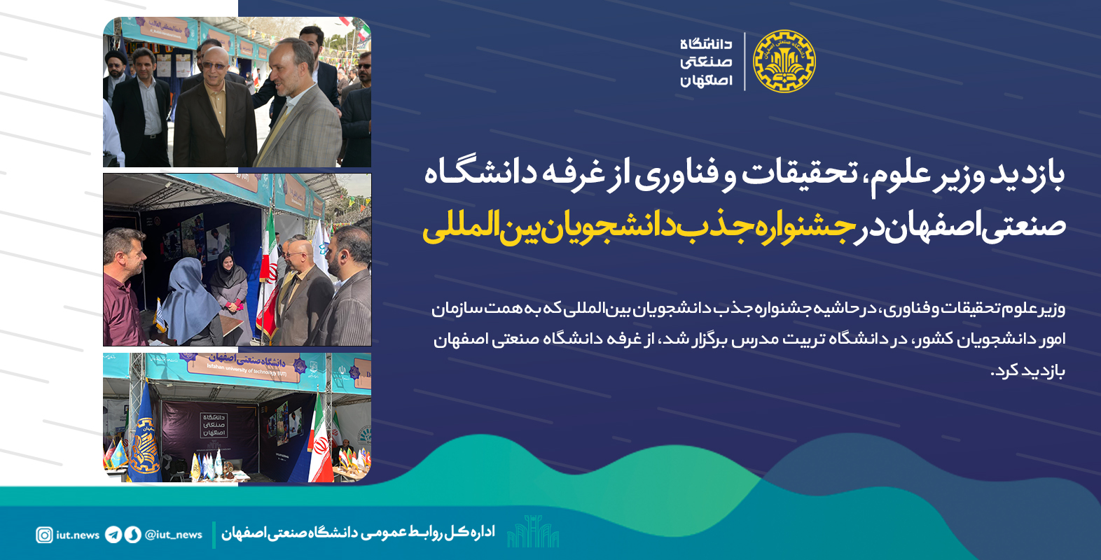 بازدید وزیر علوم، تحقیقات و فناوری از غرفه دانشگاه صنعتی اصفهان در جشنواره جذب دانشجویان بین المللی