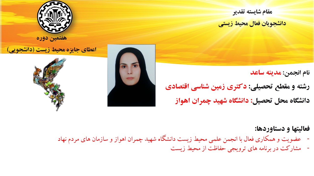 همچنن از تلاش محمد محمدنژاد، دانشجوی کارشناسی ارشد مدیریت شهری از دانشگاه ارومیه برای حفاظت از گونه های در معرض خطر انقراض مانند میشمرغ، پرندهای که در فهرست سرخ اتحادیه بینالمللی حفاظت از طبیعت قرار دارد ، در بخش دانشجویان فعال محیط زیستی در زمینه حفاظت از گونه های در معرض خطر انقراض ، تقدیر به عمل آمد.