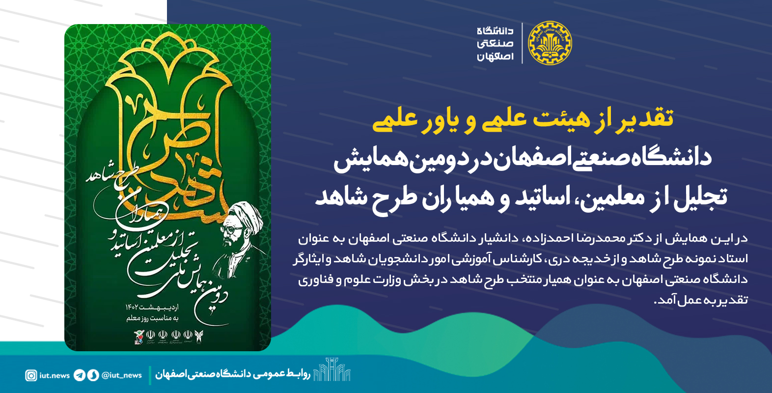 تقدیر از هیئت علمی و یاورعلمی دانشگاه صنعتی اصفهان در دومین همایش تجلیل از معلمین، اساتید و همیاران طرح شاهد