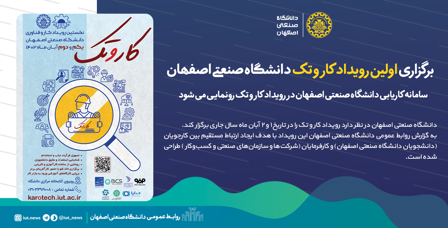 دانشگاه صنعتی اصفهان در نظر دارد رویداد کار و تک را در تاریخ ۱ و ۲ آبان ماه سال جاری برگزار کند.