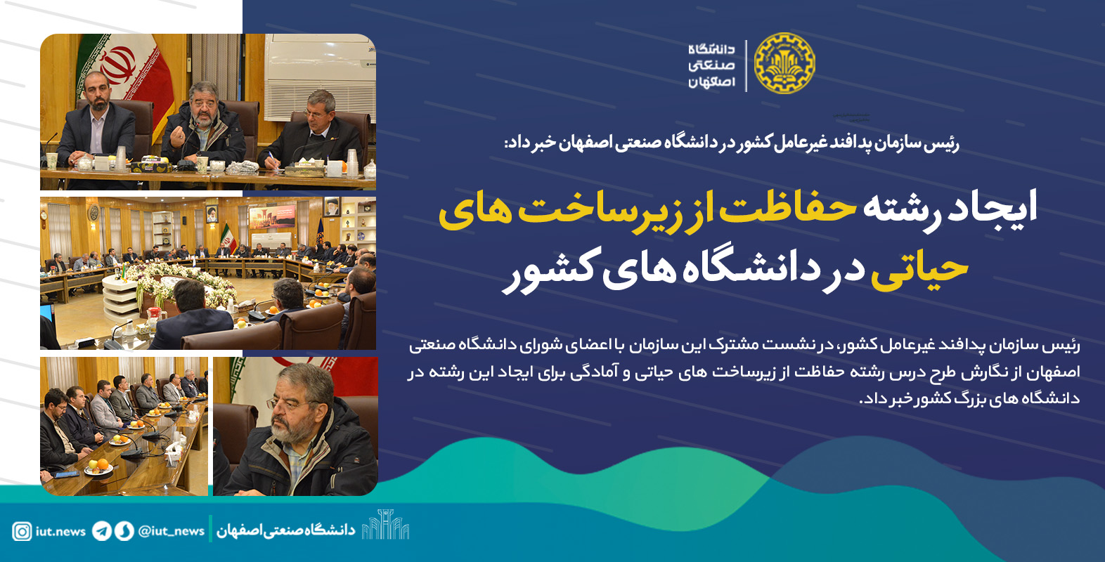 رئیس سازمان پدافند غیرعامل کشور در دانشگاه صنعتی اصفهان خبر داد: ایجاد رشته حفاظت از زیرساخت‌های حیاتی در دانشگاه‌های کشور
