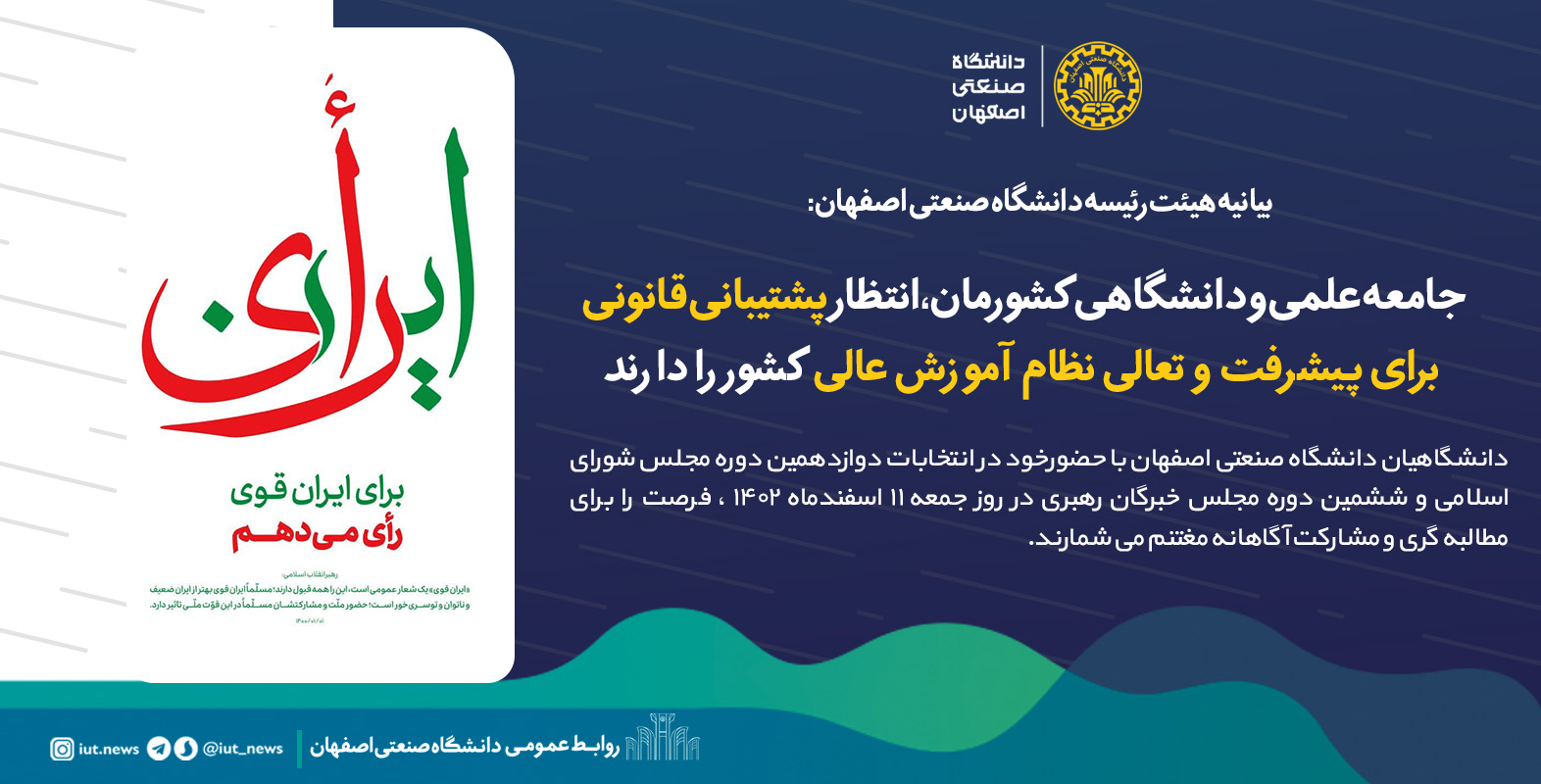 بیانیه هیئت رئیسه دانشگاه صنعتی اصفهان در آستانه انتخابات ۱۱ اسفندماه ۱۴۰۲