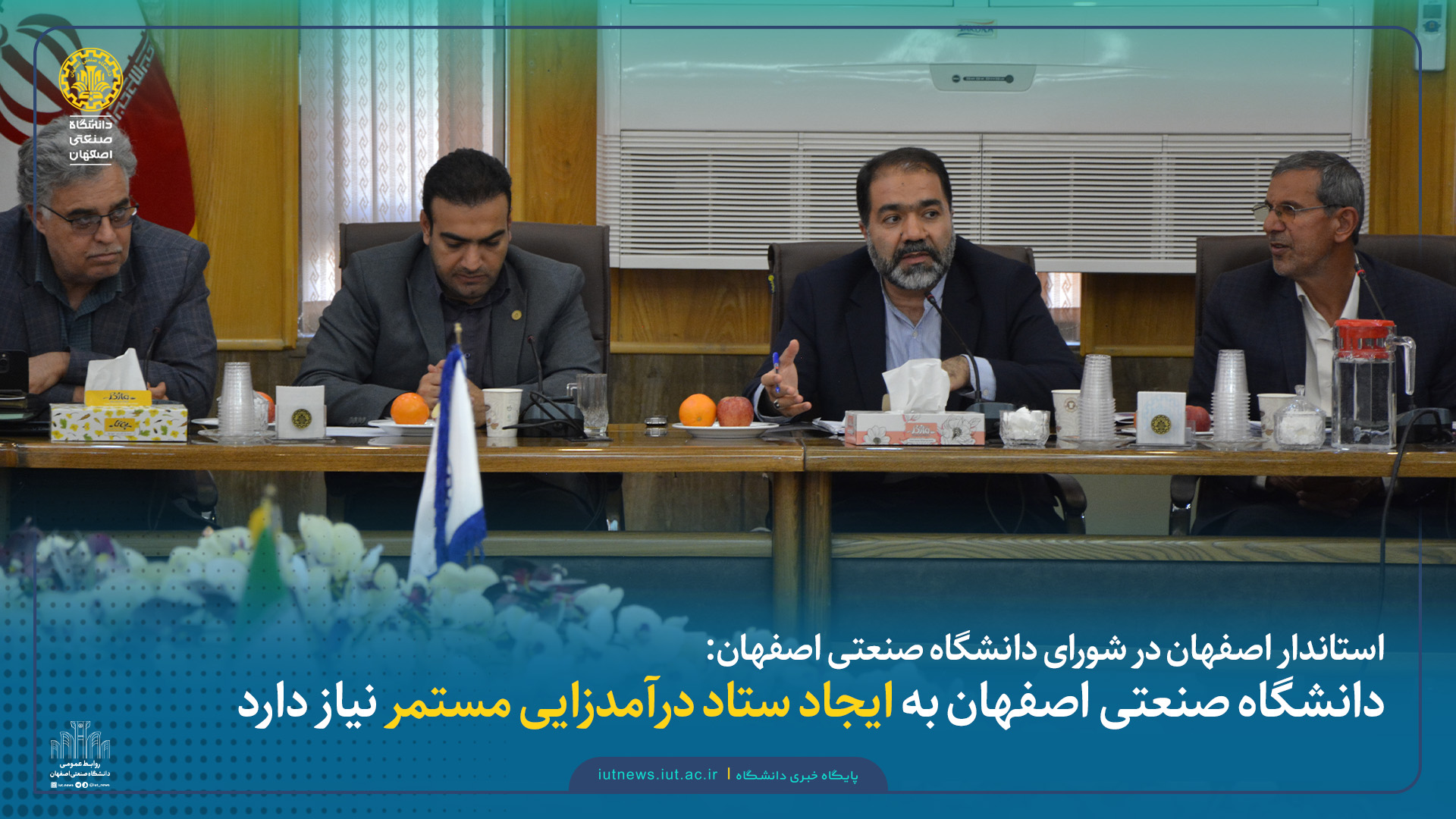 استاندار اصفهان در شورای دانشگاه صنعتی حضور یافت و گفت: ایجاد یک ستاد درآمدزایی مستمر و با برنامه در دانشگاه صنعتی اصفهان الزامی است.