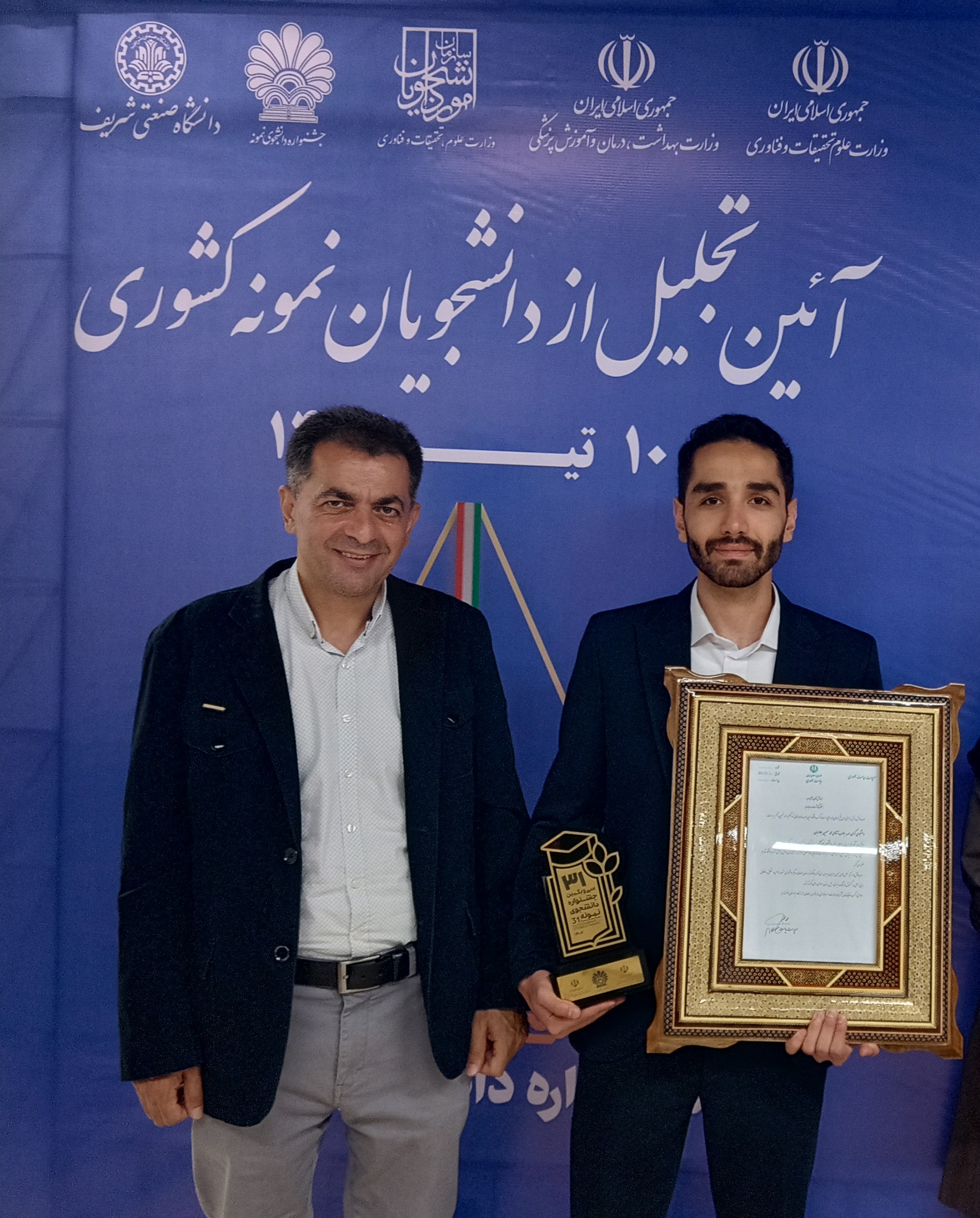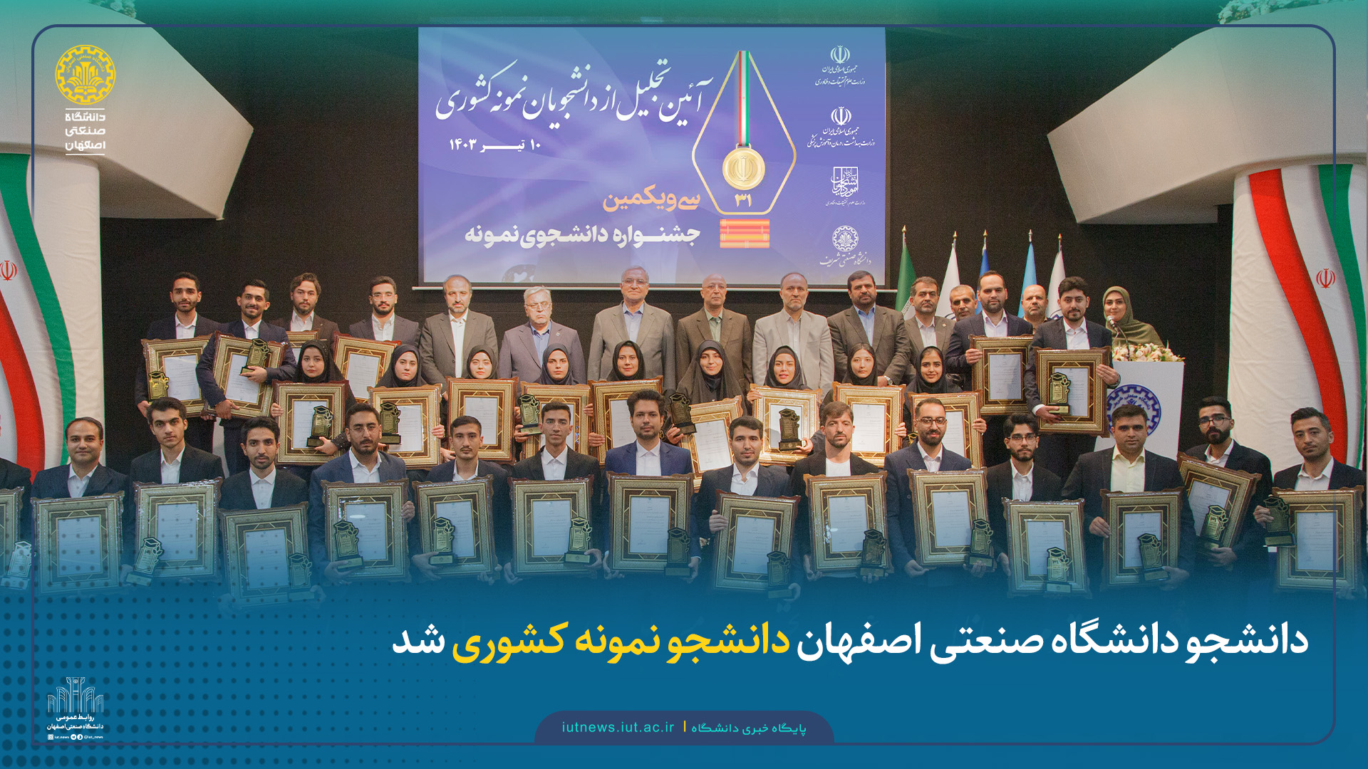 به گزارش روابط‌عمومی دانشگاه صنعتی اصفهان، مراسم اختتامیه سی و یکمین دوره جشنواره دانشجوی نمونه امروز یکشنبه ۱۰ تیرماه به میزبانی دانشگاه صنعتی شریف و با حضور دکتر محمدعلی زلفی گل وزیر علوم تحقیقات و فناوری، دکتر بهرام عین‌اللهی وزیر بهداشت، درمان و آموزش پزشکی و دکتر هاشم داداش‌پور معاون وزیر علوم و رئیس سازمان امور دانشجویان برگزار شد.
