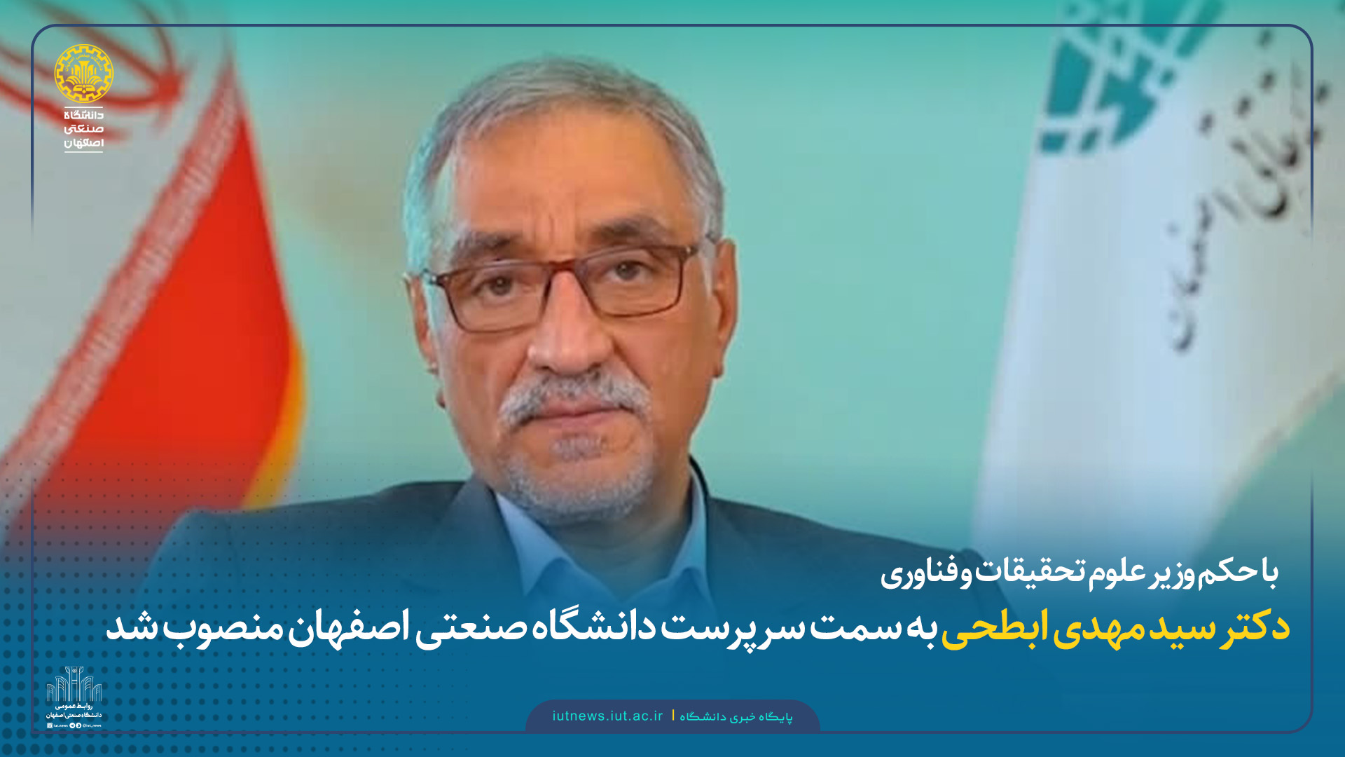 با حکم وزیر علوم، تحقیقات و فناوری؛ دکتر سید مهدی ابطحی به سمت سرپرست دانشگاه صنعتی اصفهان منصوب شد