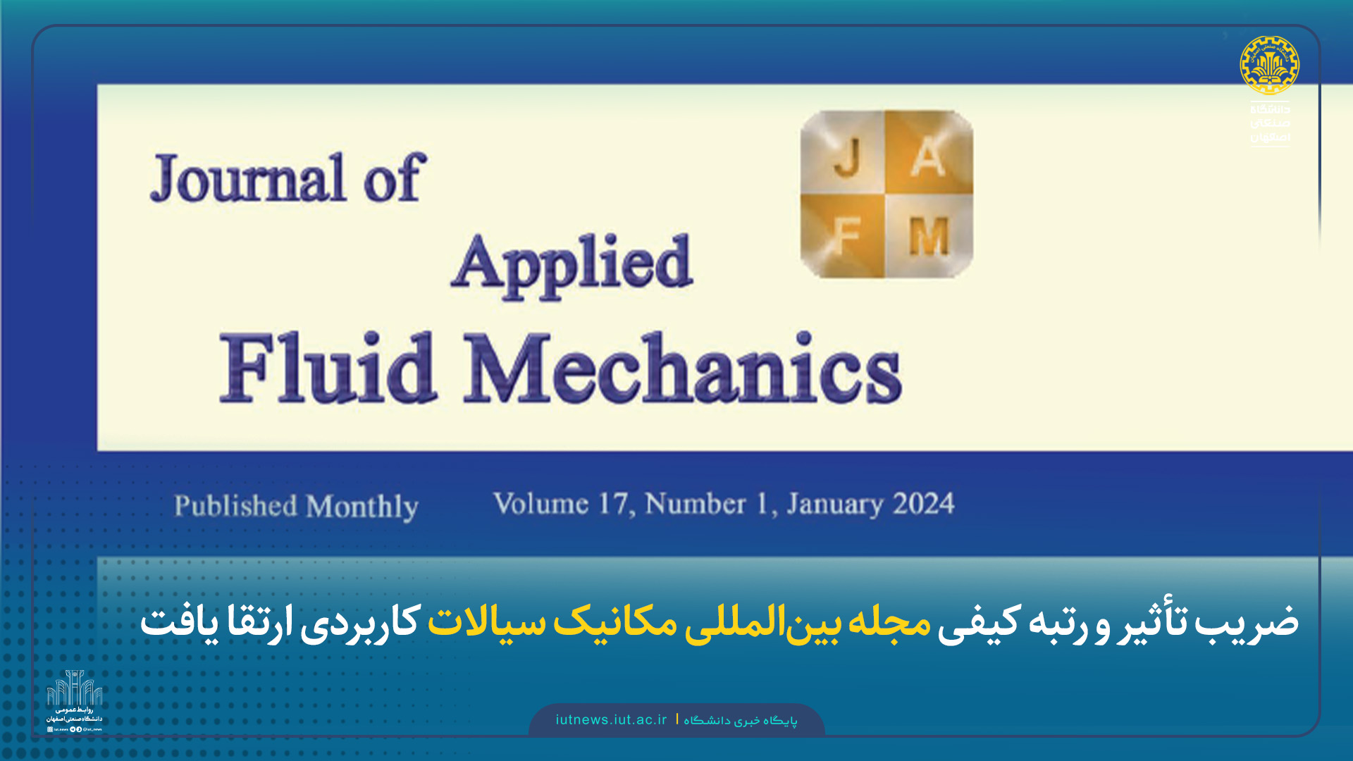 ضریب تأثیر مجله بین‌المللی مکانیک سیالات کاربردی (JAFM) وابسته به دانشگاه صنعتی اصفهان، بر اساس تازه‌ترین گزارش پایگاه بین‌المللی وب آو ساینس (WOS)، از ۱.۱ در سال ۲۰۲۳ به ۱.۳ در سال ۲۰۲۴ افزایش یافت.
