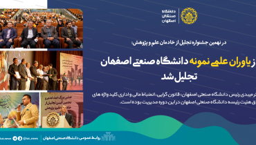 در نهمین جشنواره تجلیل از خادمان علم و پژوهش: از یاوران علمی نمونه دانشگاه صنعتی اصفهان تجلیل شد