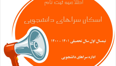 اطلاعیه ثبت نام اسکان سراهای دانشجويی در نیمسال اول سال تحصیلی 1401-1400