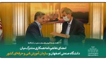 امضای تفاهمنامه همکاری مشترک میان دانشگاه صنعتی اصفهان و سازمان آموزش فنی و حرفهای کشور