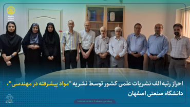 احراز رتبه الف نشریات علمی کشور توسط نشریه 'مواد پیشرفته در مهندسی'، دانشگاه صنعتی اصفهان
